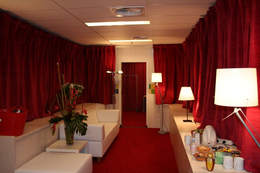 Alles wat u nodig heeft voor in een kleedkamer kan MOJO® Rental All Areas leveren, voorbeelden zijn: banken, fauteuils, salon- en hoektafels, passpiegels, make-up spiegels met lampen, staande lampen, kleedrekken, kapstokken, prullenbakken, koelkasten etc… Ook kunnen wij kleedkamers creëren door middel van ons Pipe & Drape® Systeem, en/of door middel van standbouw. We zorgen natuurlijk ook dat er een mooi tapijt op de grond ligt, door middel van tapijttegels of tapijtrollen.